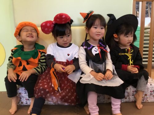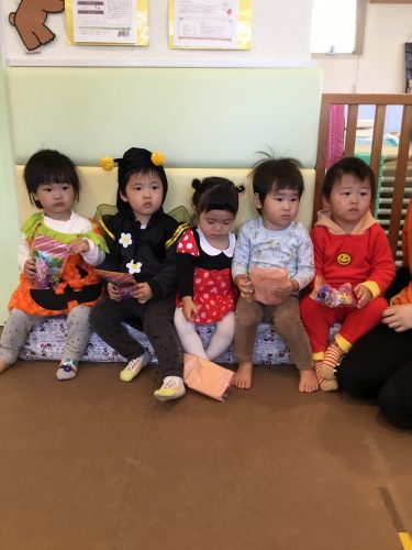 最後は、「トリック オア トリート」と言って園長先生からお菓子を貰いました?