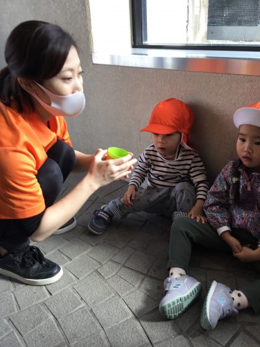 子ども達は「あたたかいね〜」と言ってお散歩に出掛けて、