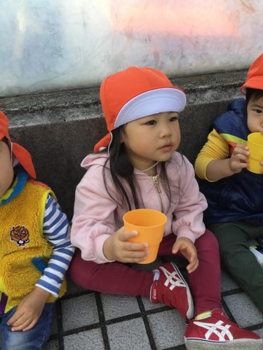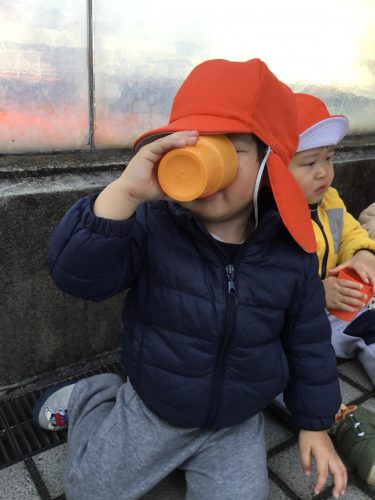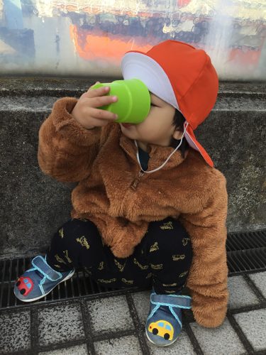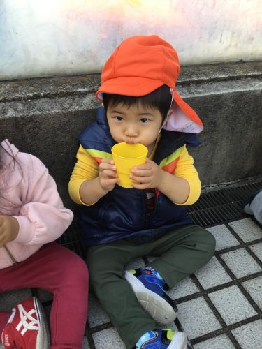 水分補給中の子どもたちをお届けします?