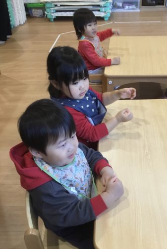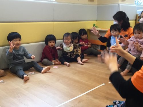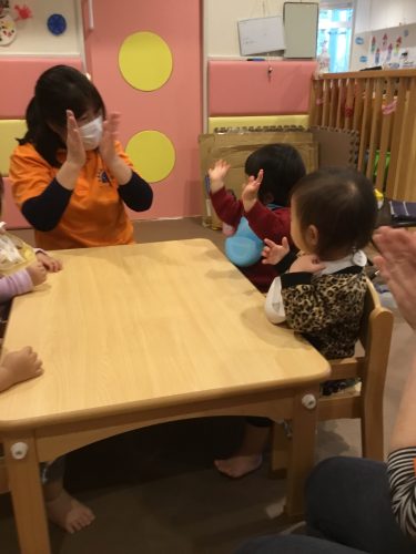 「手を~たたきましょ~♪」