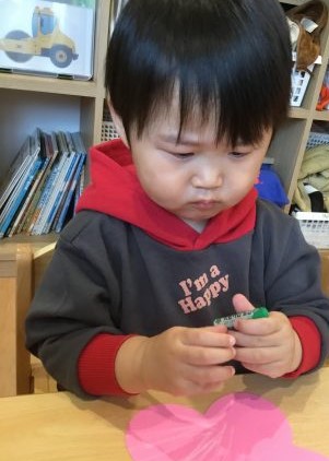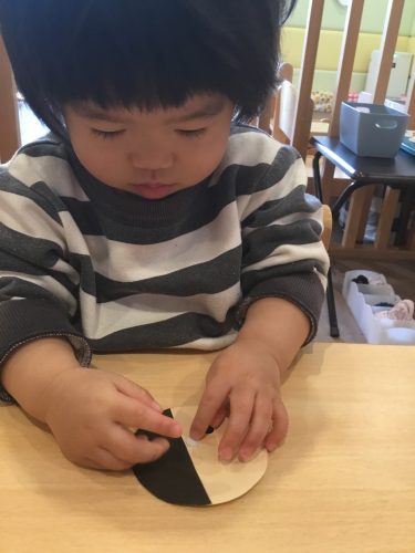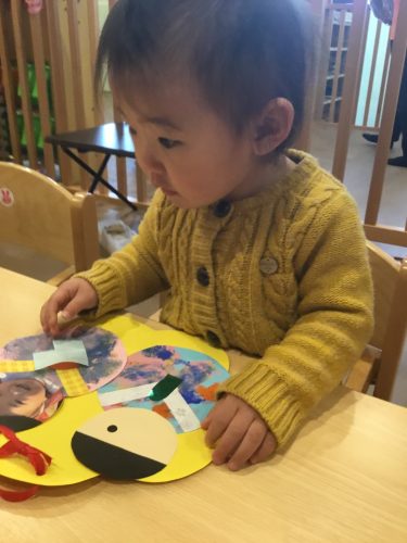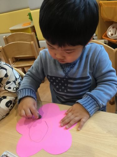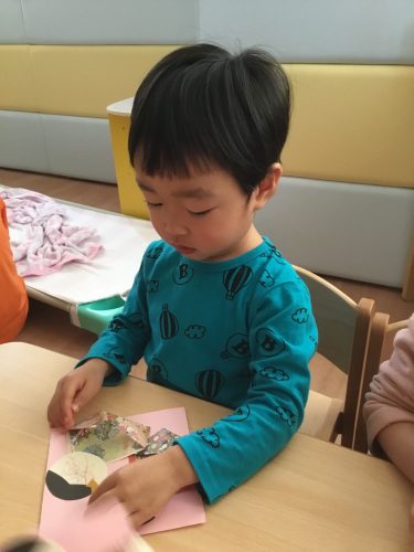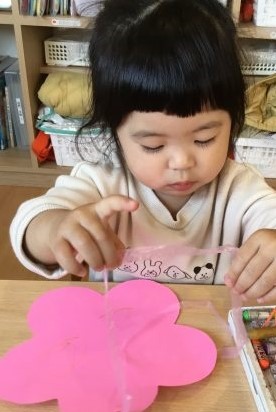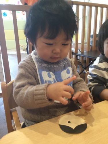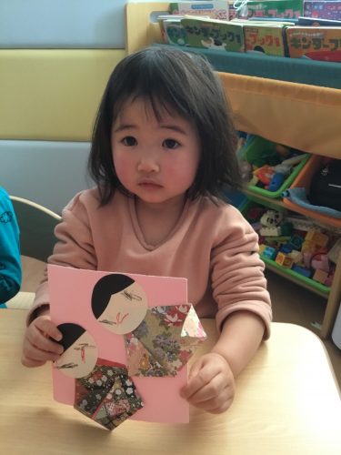 おひな様製作では、目とお口のシールをペタンと貼って、とてもシールに興味を持って貼っていました??