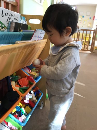 「ぼく、、このたまごのおもちゃ好きなんだよねぇ〜?」