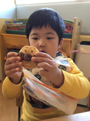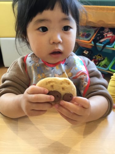 午後のおやつのクッキーがアンパンマンのお顔をしてるよ〜!