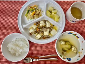 ご飯 味噌汁 麻婆豆腐 切り干し大根のサラダ キウイ