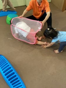 洗濯カゴの底を取りのぞけばトンネルに大変身!