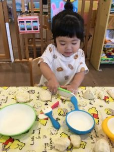 小麦粉粘土は水を混ぜて変わっていく様子も楽しいです。