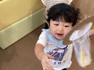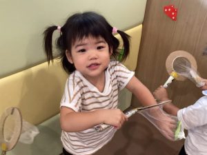 手作りアミをもらうと嬉しそうに虫さんを捕まえに夢中になっていましたよ🤗