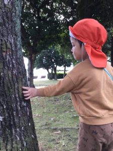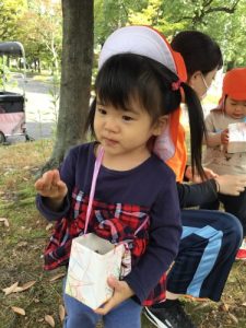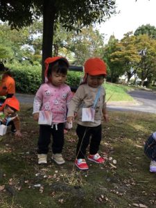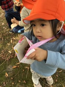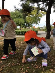 そしてヒラヒラ〜と落ち葉が舞うと、子どもたちの楽しみは!