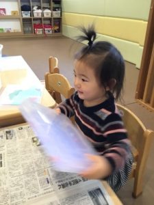 以前だと手のひら全部、絵の具まみれになっていましたが、
