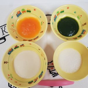 粥 野菜スープ(豆腐) 人参うらごし ほうれん草ペースト