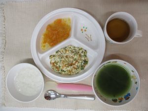 粥 野菜スープ(小松菜) 豆腐ペースト キャベツのペースト