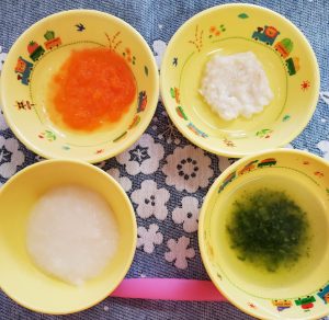 粥 野菜スープ 白身魚のつぶし煮 にんじんペースト