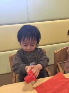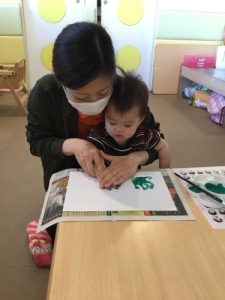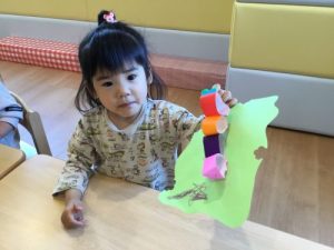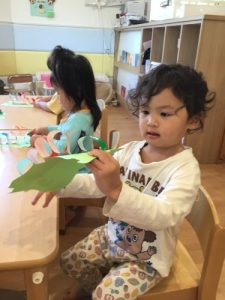 もも組のお友だちは緑色で手形を取っていましたよ!