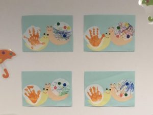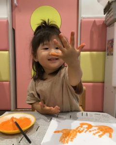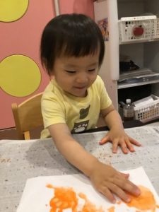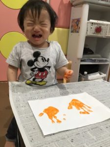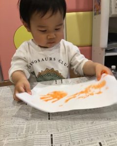 1歳児さんは初めて手形を取りました!