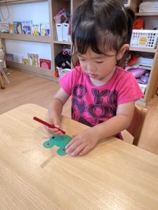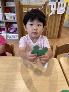 2歳児のお友だちはカエル製作をしました!!🐸