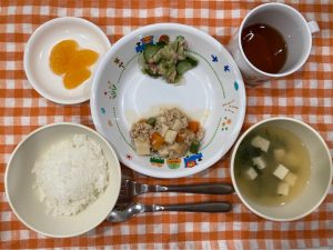 子ども達が給食を食べているとき、保育の先生が「デザートにみかん缶もあるよ~」と声をかけると、「みかん!!」と嬉しそうな笑顔で答えている場面を見る事が出来ました♪