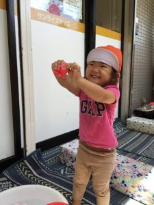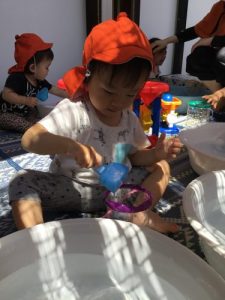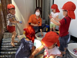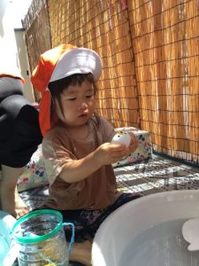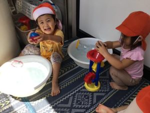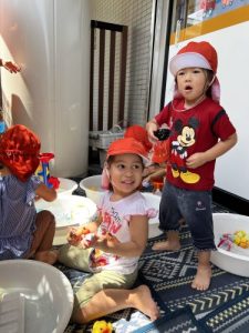 お水遊びがスタートしてから1カ月が経ち子どもたちはお水遊びにも慣れ、