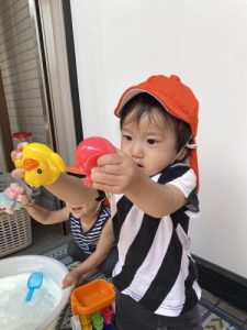 登園するたびに「今日お水遊びある?」とお水遊びを楽しみにしてくれていますよ!!