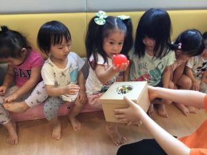 👧👦「red!」「green!」「yellow!」とりんご組のお友だちが教えてくれるので、