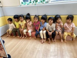 1と1を指で作って自分のお鼻に当てている子どもの姿もありました![]()