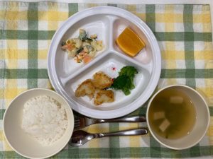 今日はオレンジでしたが、自分で皮をとって食べたり、食べやすいように小さく裂いたりと工夫して食べている様子を見る事が出来ました。