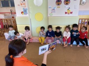 保育士の絵本の読み聞かせがありました。