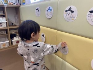 壁に貼ってあるオバケと一緒のオバケを探そう!というゲームでした。