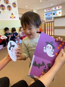 歌い終えると、ひとり一枚ハロウィンカードが配られました。