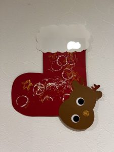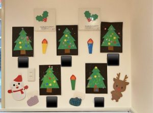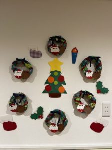 リースにはキラキラシールをつけて可愛くしましたよ![]()