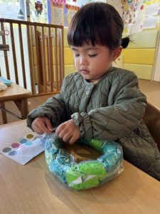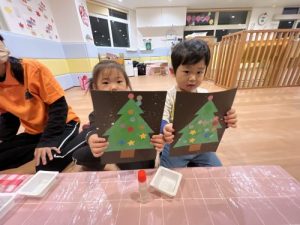 2歳児さんはクリスマスツリーを作ったよ🌲