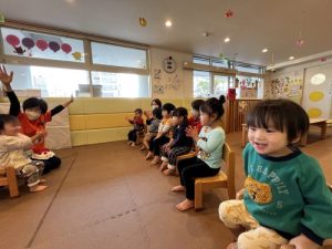 「あんぱんまーん!」と後ろに隠れているお友だちを呼んで盛り上がりました