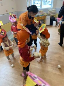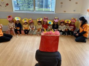 「なんだろう?」と目をまんまるとしてキョトンとしている子もいれば「わーい!おにー!」とテンションが上がる子もいました