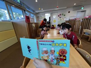 2歳児のお友だちは今月から歯磨きがスタートしました!