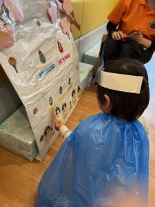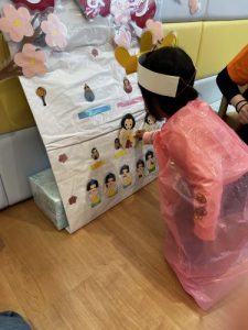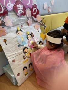 みんなで雛壇パネルにお人形を貼るゲームをしました!