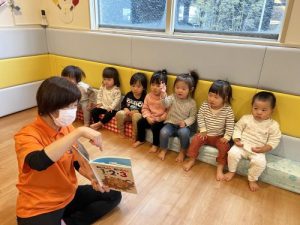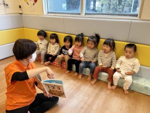 絵本を見ながら保育士の真似っこ「1!2!…」!