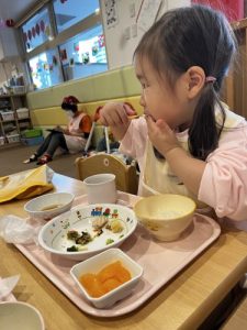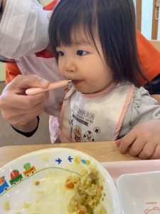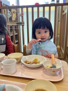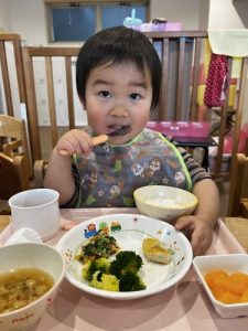 今回は保育園でのお給食の様子をお届けします![]()