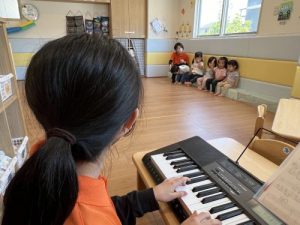 ピアノの音楽に合わせてまずは、「おへんじハイ!」のお歌♪