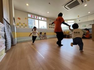 ピアノの音が聞こえると、ビューンと手を広げ走りだす子どもたちです!