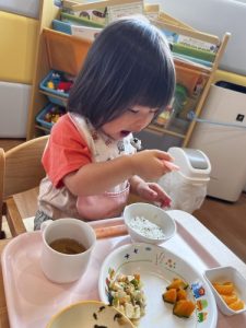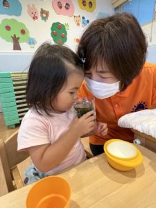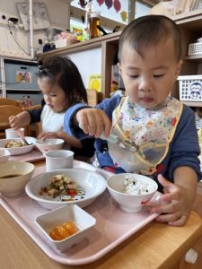 今回は2歳児のお友だちが取り組んでいる「食育」について