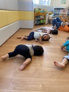 今日はピアノの音楽に合わせて、転がってみたり、生き物や動物になりきりましたよ♪