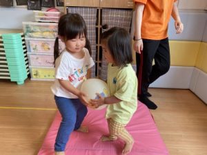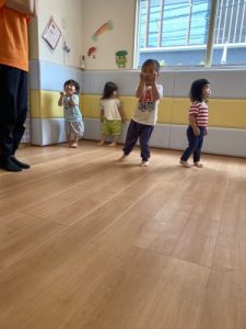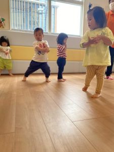 1歳児さんは2歳児のお兄さんと一緒に活動をしました!!