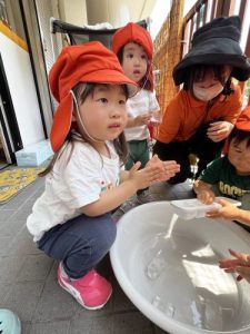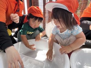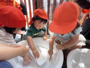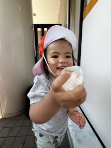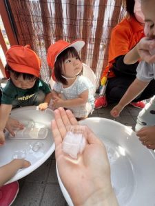 そんな暑い日にはお水だけでなく、氷も用意して氷遊びもしましたよ!