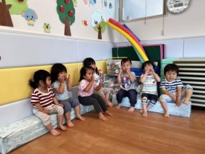 今回は毎週火曜日と木曜日に行なっている英語のカリキュラムの導入時に行なっている手遊びについてご紹介します。
