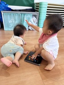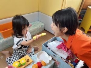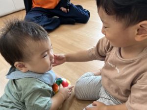 2歳児さんは0歳児さんのお世話もしてくれますよ!