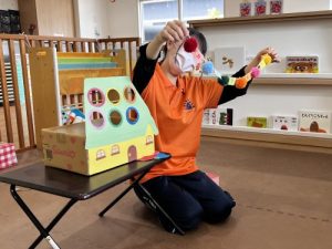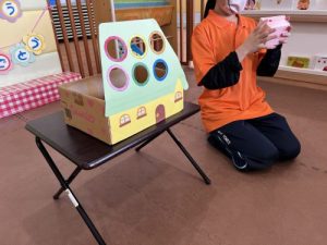 保育士からの出し物コーナーでは「魔法のおうち」を