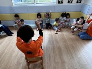 同じ手遊びでは飽きてきてしまうので、『one little finger』と『rock scissors paper』を今月は楽しみました🎵🎶♬