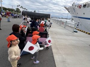 大きな船に驚きが隠せない子どもたち🚢