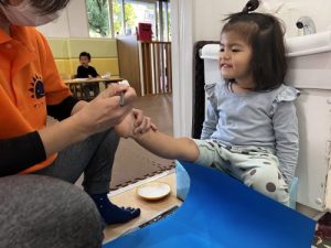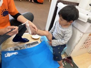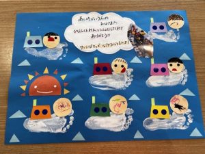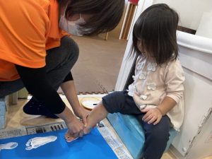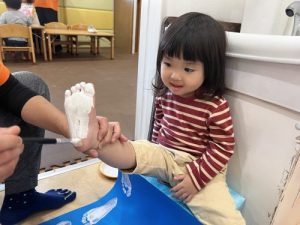 子どもたちは何やら足型を取っています。