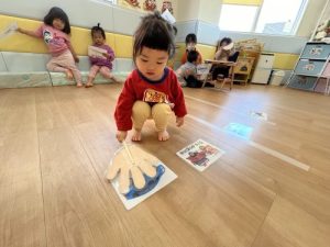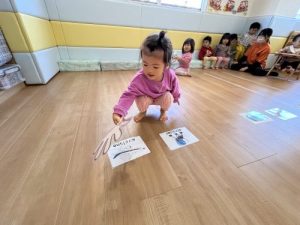 悩みながらもいちご組のお友だちもカードにタッチ🖐️