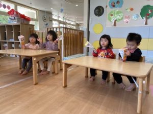 楽しそうに歌いながら鈴を使って演奏を楽しんでいる子どもたちです!